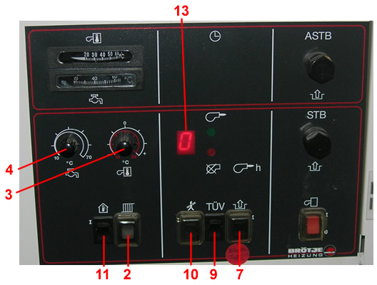 Der einfachste Weg zu einer direkten Brennerbeeinflussung geht somit über die sogenannte Reglerstop-Funktion. Hierzu sollte wie oben beschrieben der Außenfühler deaktiviert sein. Durch Drücken der Taste 9 für mehr als 3 s startet der Brenner. Das kann auch durch ein Relais parallel zur Taste 9 erfolgen. Mit dem Regler 3 kann die Brennerdrehzahl stufenlos von Minimum bis Maximum eingestellt werden. Bei meinem Haus wäre die Minimaleinstellung von 8 kW in jeder Situation vollkommen ausreichend.